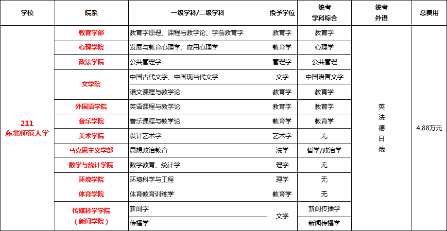 東北師范大學是國家教育部直屬的綜合性師范大學,是中國共產黨在東北地區(qū)創(chuàng)建的第一所綜合性大學、首批國家“211工程”重點建設大學、國家“985工程”教師教育優(yōu)勢學科創(chuàng)新平臺建設高校、首批國家“雙一流”建設高校。學校設有22個研究生招生學院(部),學科專業(yè)體系覆蓋12個學科門類,博士學位授權一級學科23個,博士專業(yè)學位類別4個,碩士學位授權一級學科34個,碩士專業(yè)學位類別25個;博士后科研流動站24個。學校擁有馬克思主義理論、教育學、世界史、化學、統(tǒng)計學、材料科學與工程6個國家“雙一流”建設學科,入選數量位列全國第19位。