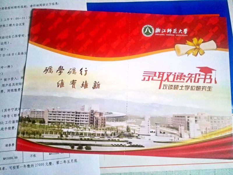 浙江師范大學(xué)(雙證MPA)錄取通知書