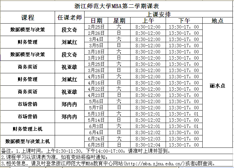 浙江師范大學(xué)MBA課程安排
