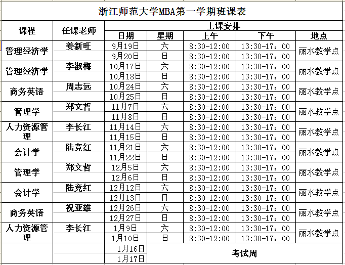 浙江師范大學(xué)MPA課程安排