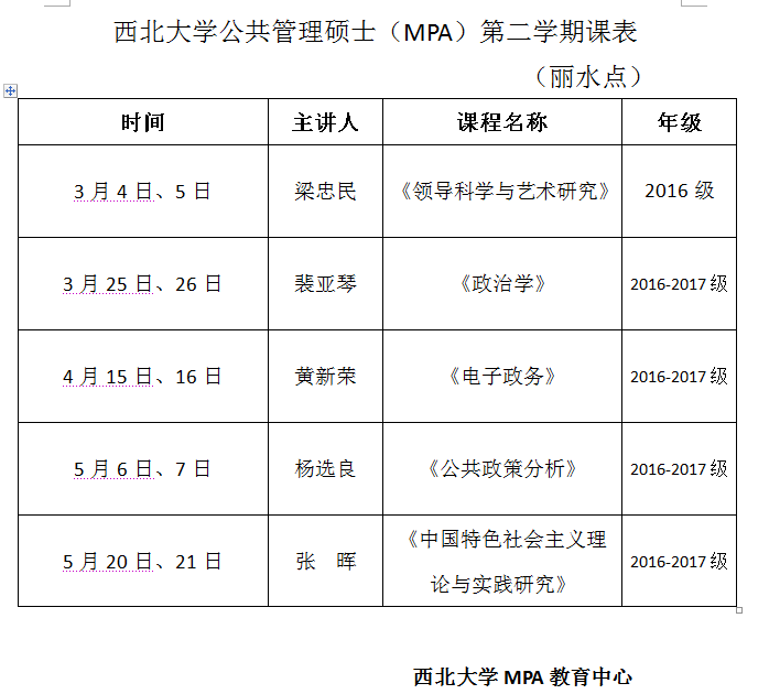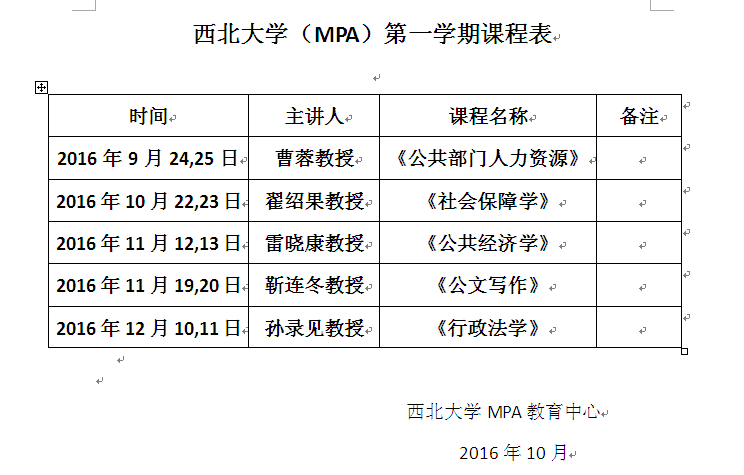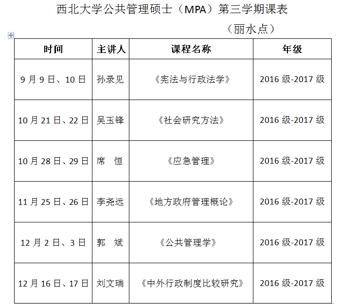西北大學(xué)MPA課程安排