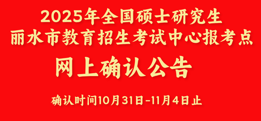 2025年全國碩士研究生招生考試麗水市教育招生考試中心報考點(報考點代碼:3309)網(wǎng)上確認(rèn)公告
