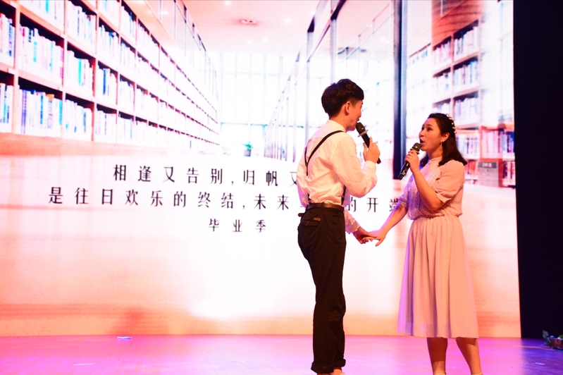合唱《畢業(yè)歌》拉開晚會序幕?,F(xiàn)代舞《samsara》活力四射,給現(xiàn)場觀眾帶來一場視聽盛宴。民謠《青春再見》使空氣中都充滿著離別的傷感。經(jīng)管學院的老師們的舞蹈《歡聚一堂》傳承我國傳統(tǒng)文化,迎來陣陣掌聲。漢服舞《采薇》為離別賦予了新的涵義。朗誦《我,好像要畢業(yè)了》按照時間順序依次講述大學生活,引發(fā)同學的共鳴。幽默的表達方式、到位的肢體動作處處彰顯著表演者對花椒的深深眷戀。