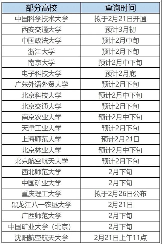多數(shù)院校也陸續(xù)開始公布查詢時間通知: