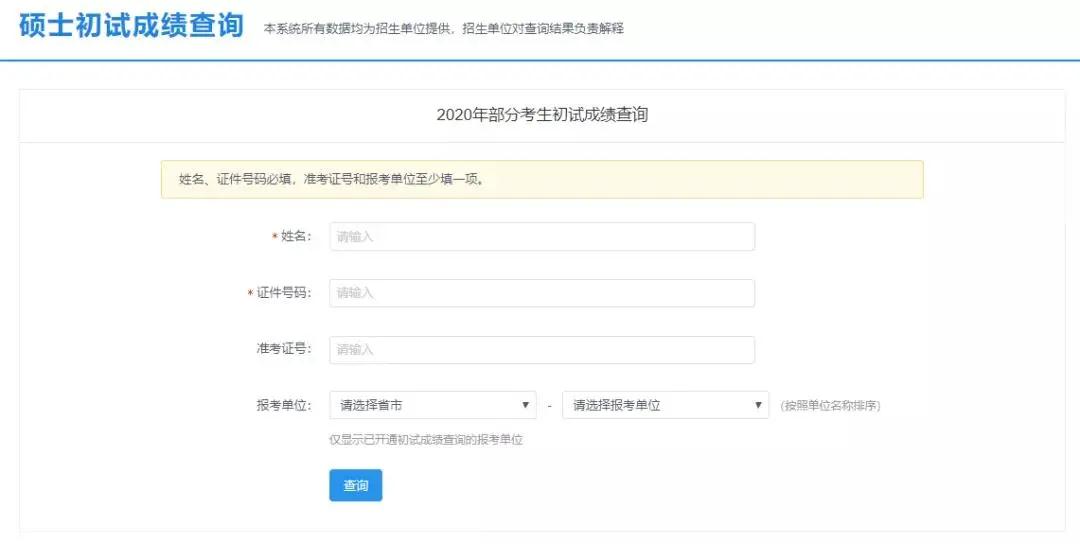 姓名、證件號碼必填,準(zhǔn)考證號和報考單位至少填一項,所以,準(zhǔn)考證丟失的考生也不必?fù)?dān)心,到時候也可以查到初試的分?jǐn)?shù)。