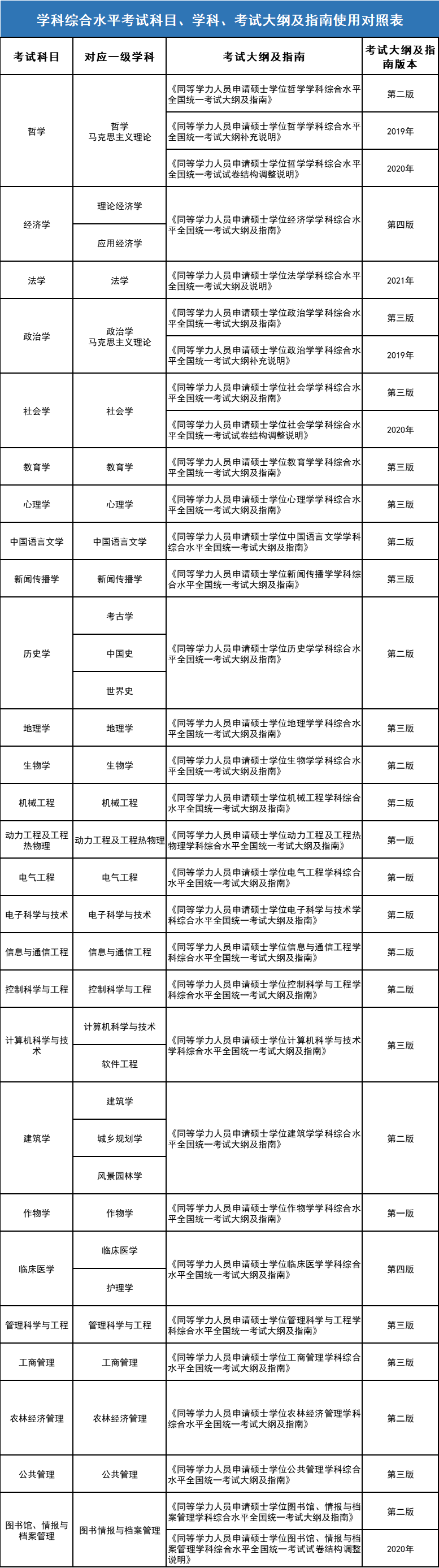 2023年同等學(xué)力申碩考試于5月21日(星期日)舉行。同等學(xué)力申碩考試科目分為:外國(guó)語(yǔ)考試和學(xué)科綜合考試。考試大綱如下: