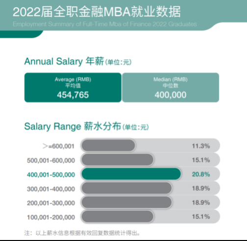 上海交通大學(xué)高級(jí)金融學(xué)院的2022屆全日制金融MBA就業(yè)報(bào)告顯示,畢業(yè)生們平均年薪達(dá)到了45.4萬(wàn)元;中位數(shù)達(dá)40萬(wàn)元;薪資在60萬(wàn)以上的畢業(yè)生占據(jù)了11.3%的比例。