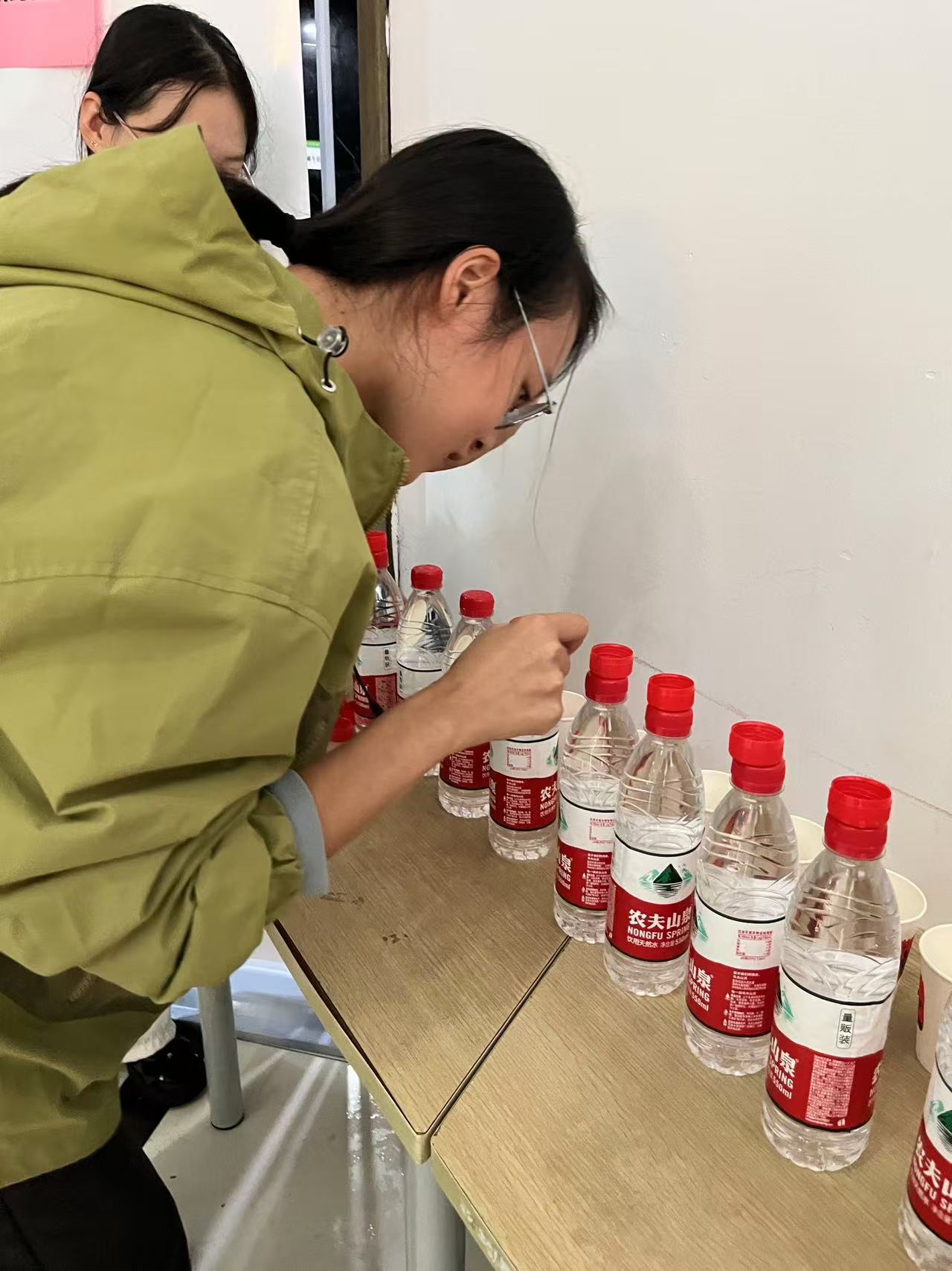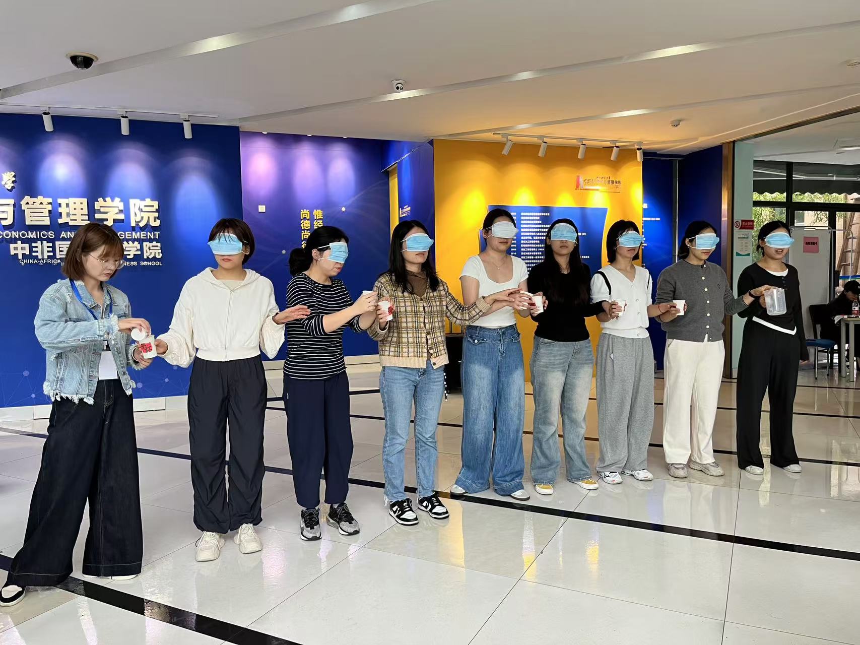 比賽人員佩戴眼罩,手持紙杯。隨著裁判員的發(fā)令,第一名成員將手中紙杯中的水倒入第二名成員手中的紙杯中,以此類推,每隊需完成 500 毫升的傳水任務(wù),用時短者獲勝。時間緊任務(wù)重,游戲看似簡單卻暗藏玄機,唯有個人耐心加團隊協(xié)作才能取得勝利。通過這項活動,同學(xué)們深刻體會到團隊凝聚力的重要性。