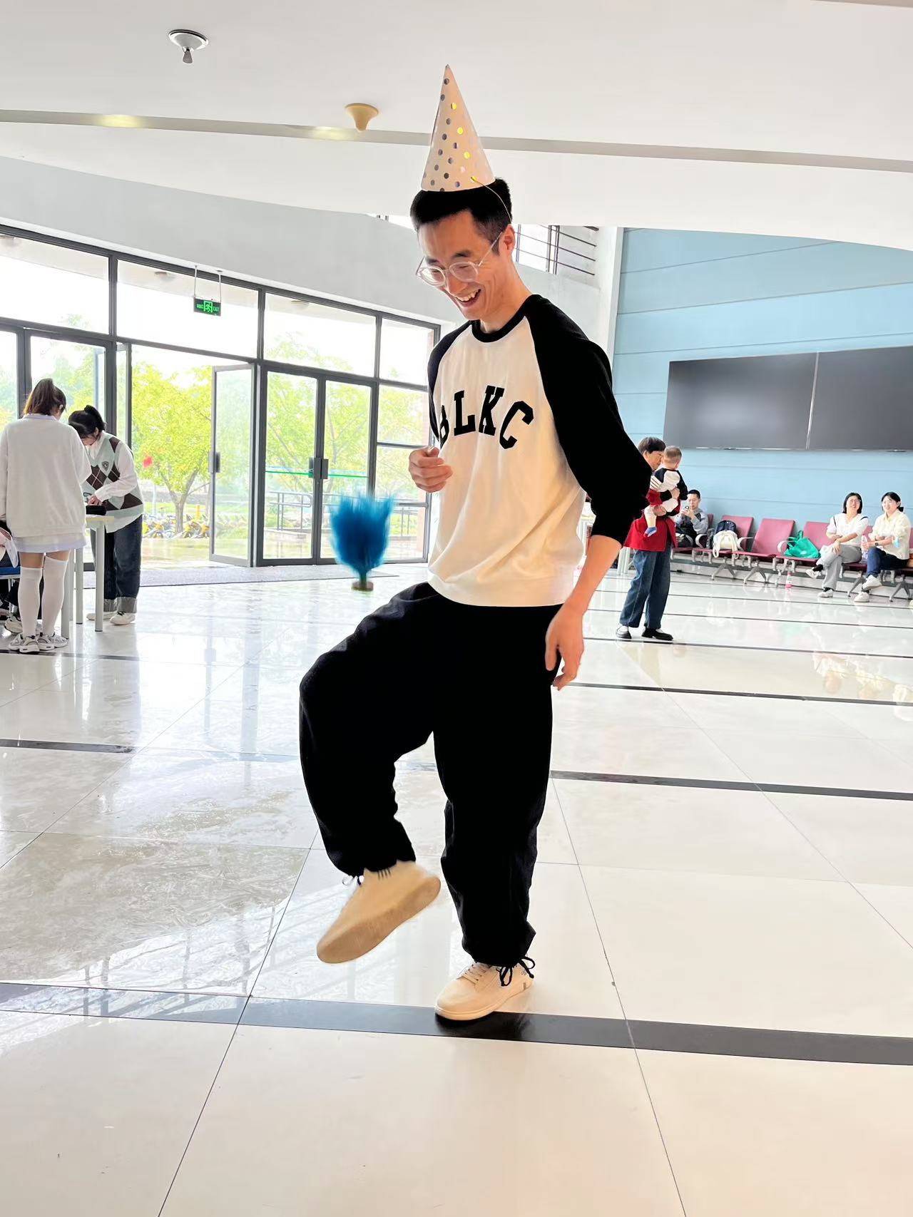 頭戴高帽,足踏彩毽,身姿輕盈,笑語滿天??矗ψ釉谕瑢W(xué)們腳尖起舞!